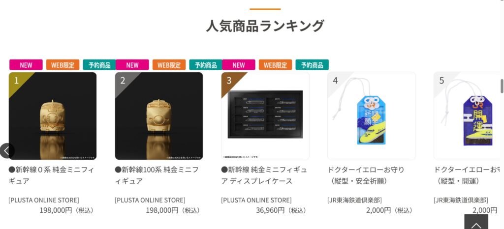 人気商品ランキングは見事に1位、2位が19万8千円の0系・100系新幹線純金ミニフィギュアでした!!!😲😲😲(12/17現在)